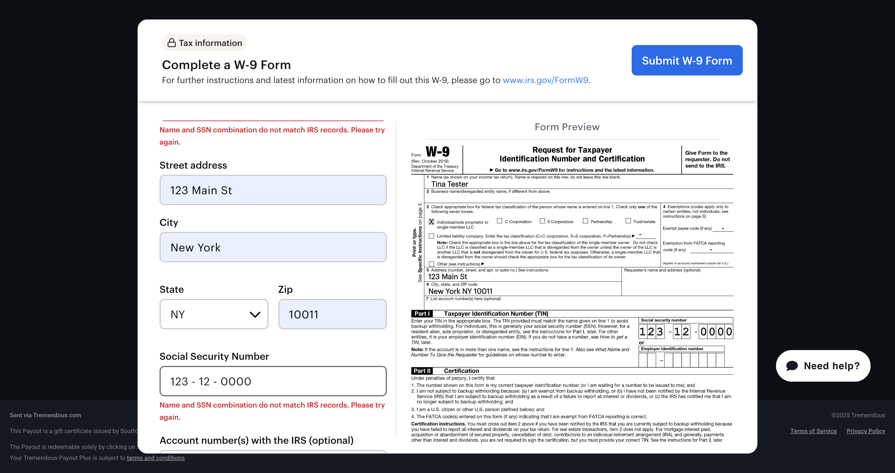 Tremendous automates the manual parts of tax management—collecting W-9s, validating TINs, and tracking compliance—so you don’t have to.